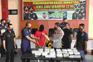 Dari pengembangan kasus sebelumnya Sat Resnarkoba Polres Metro Jakarta Pusat berhasil mengamankan barang bukti yaitu berupa Narkoba jenis Sabu seberat 22 Kg yang ditemukan di rumah tersangka berinisial SM (53).