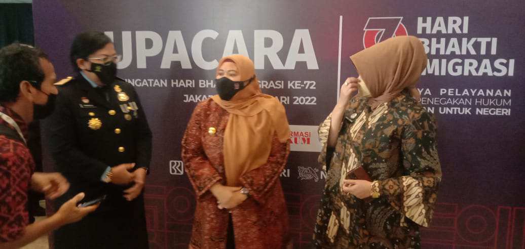 Bupati Muaro Jambi Hj. Masnah Busro, S.E., M.Tr.IP., ketika di wawancara awak media menyampaikan ucapan “Selamat untuk HUT Imigrasi yang ke -72. Yang mana sebagai Bupati Muaro Jambi dirinya hadir untuk mendapatkan penghargaan dari kemenkum HAM, dari Direktorat Imigrasi tentang pelayanan Imigrasi yang ada di Muaro Jambi.