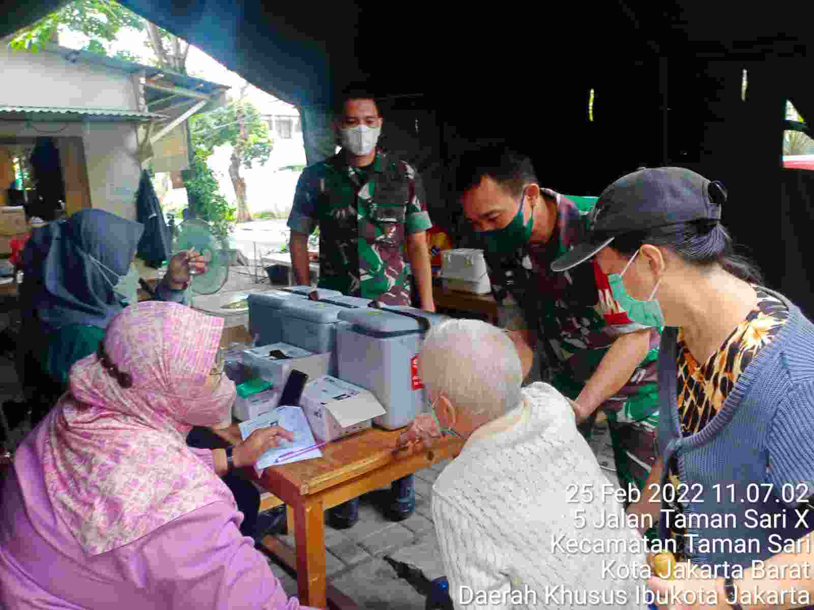 Giat yang di mulai pukul 08.00 Wib hingga pukul 11.30 Wib dengan Nakes Kesdam Jaya 4 personil dan Nakes Puskesmas Tamansari 6 personil. giat di monitoring Babinsa Sertu Abdul Madi.