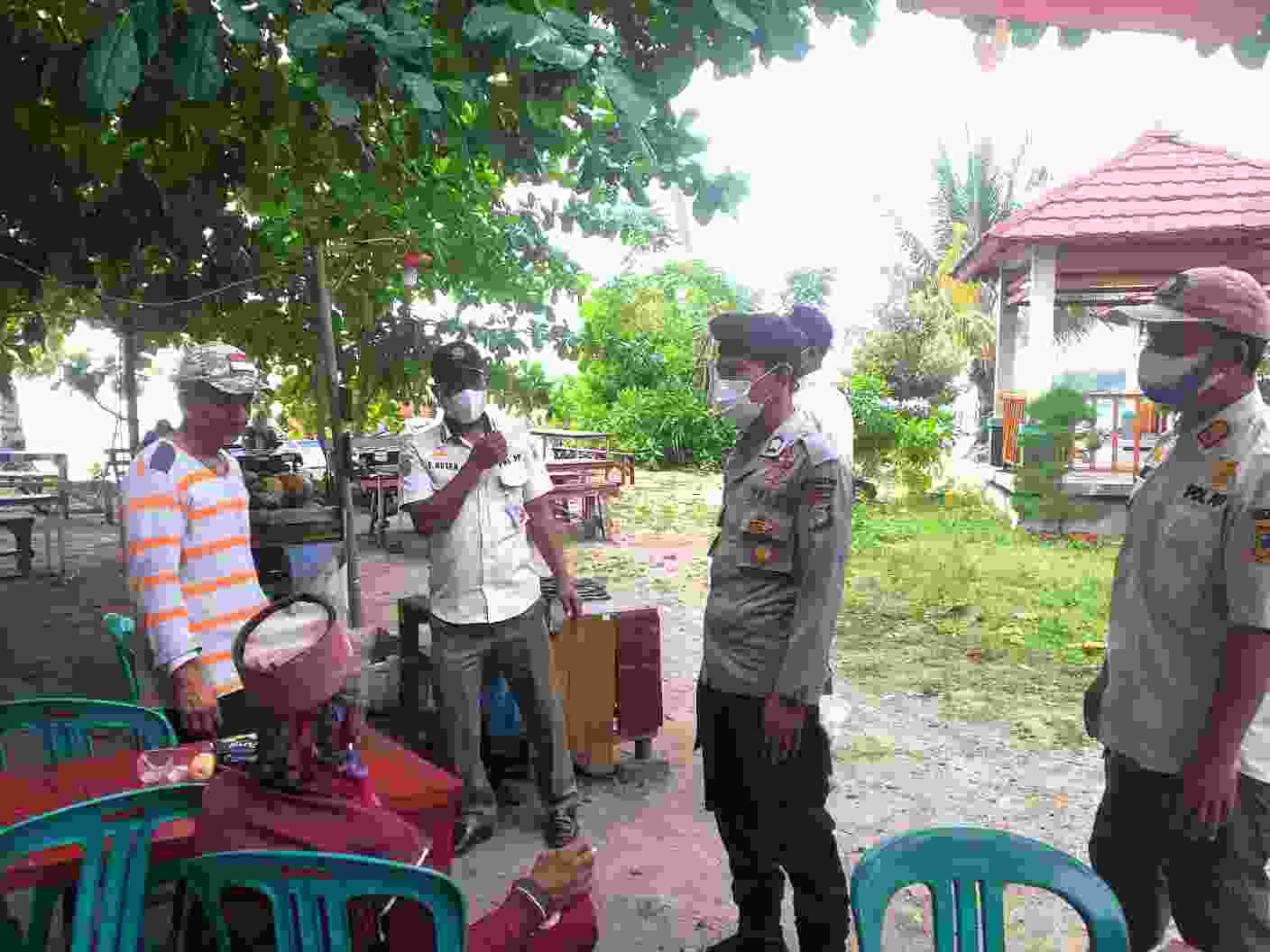 Imbauan protokol kesehatan disampaikan oleh personel Polsek Kepulauan Seribu Selatan saat pelaksanaan Patroli Jalan Kaki Gabungan Tiga Pilar dengan sasaran ruang publik dan lokasi-lokasi wisata di Pulau Tidung, Pulau Pari dan Pulau Untung Jawa.