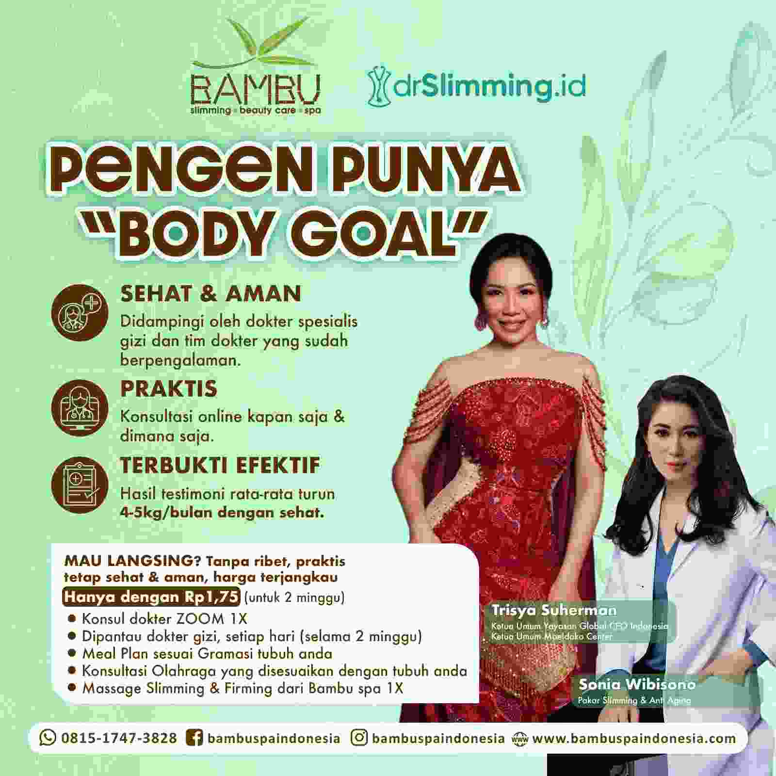 Ingin Tampil Langsing Tanpa Perlu Diet Extra Ketat, Segera hubungi Bambu Spa dan drSlimming, Promo Terbatas!!! kolaborasi Pengusaha Cantik Trisya Suherman dan Dokter Cantik Dr. Sonia Wibisono.