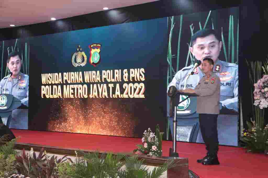 Kapolda Metro Jaya Irjen Pol Dr Mohammad Fadil Imran, M.Si., melepas 260 purnawirawan Polri dan PNS yang telah memasuki purna bakti (pensiun) tahun 2022. Wisuda Purnawira Polri dan PNS Polda Metro Jaya dilaksanakan di Balai Pertemuan Metro Jaya (BPMJ), Selasa (15/11/2022) pagi.