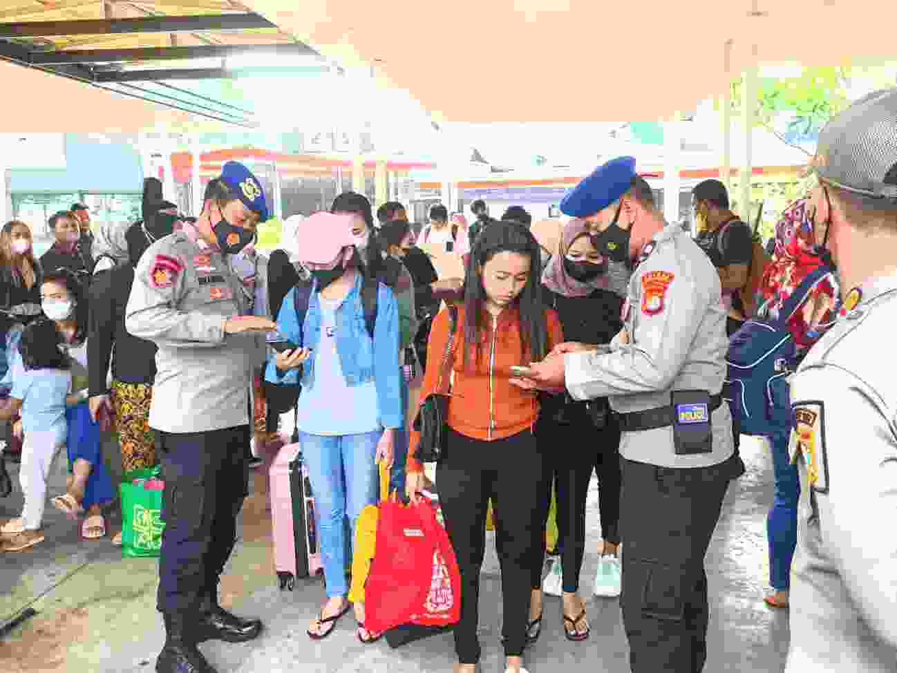 Personel Polres Kepulauan Seribu yang ditugaskan di Dermaga Marina Ancol bersama instansi terkait setempat terus mengetatkan aturan protokol kesehatan dan mewajibkan scan PeduliLindungi kepada semua penumpang kapal yang akan ke Pulau.