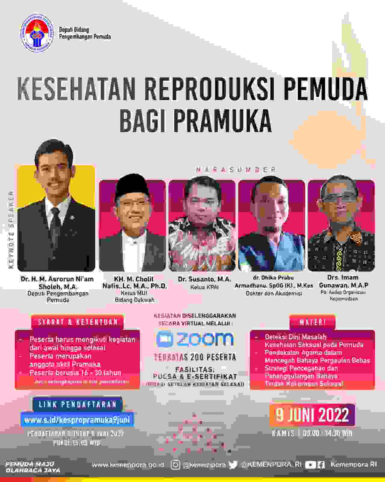 Kementerian Pemuda dan Olah Raga RI kembali menggelar pelatihan yang mendorong pemahaman tentang Kesehatan Reproduksi bagi para pemuda yang menjadi program rutin Deputi Bidang Pengembangan Pemuda (9/6/2022).