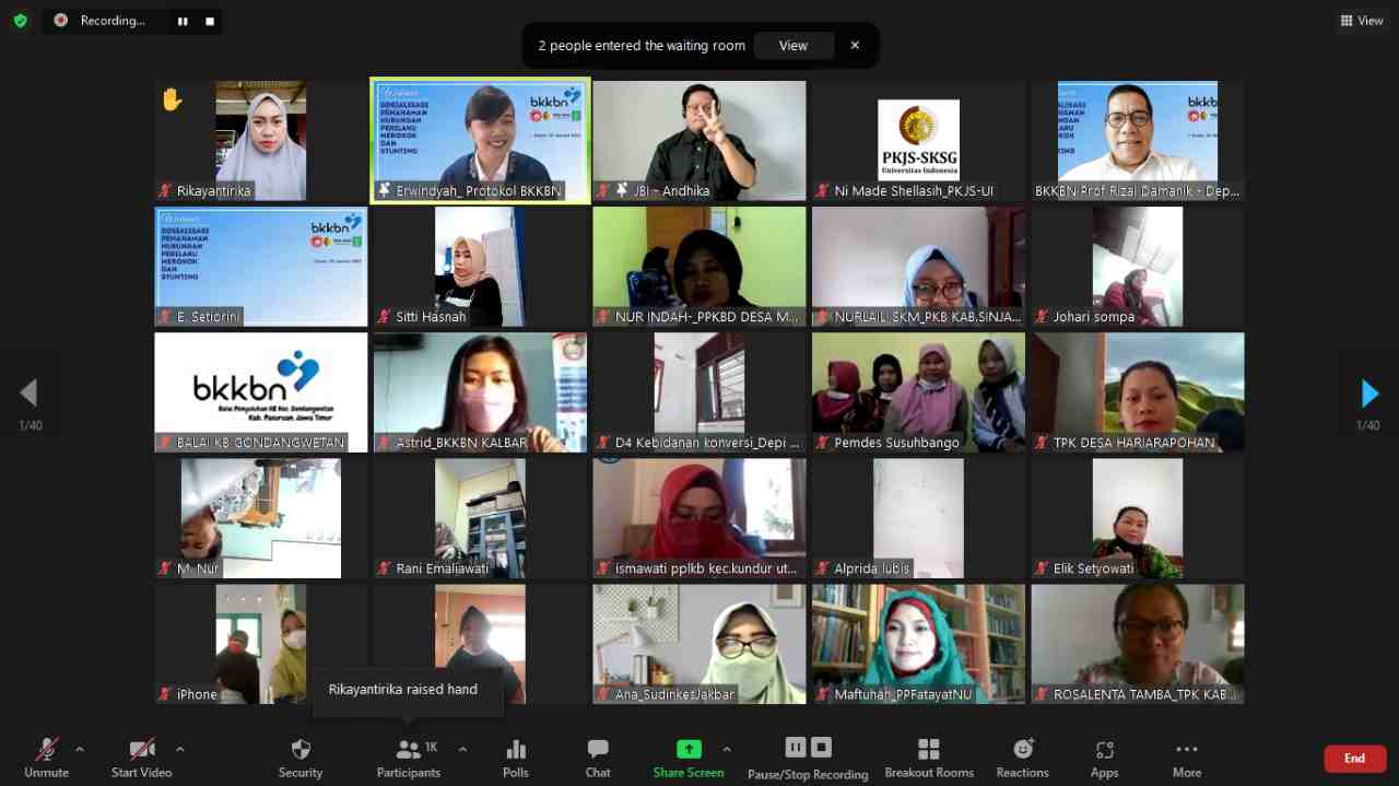 Hadir dalam webinar Pejabat Tinggi Pratama, Koordinator, Sub-koordinator, Tim Pendamping Keluarga, Penyuluh KB (PKB), dan Persatuan Kepala Dinas (Perkadis) KB di seluruh provinsi