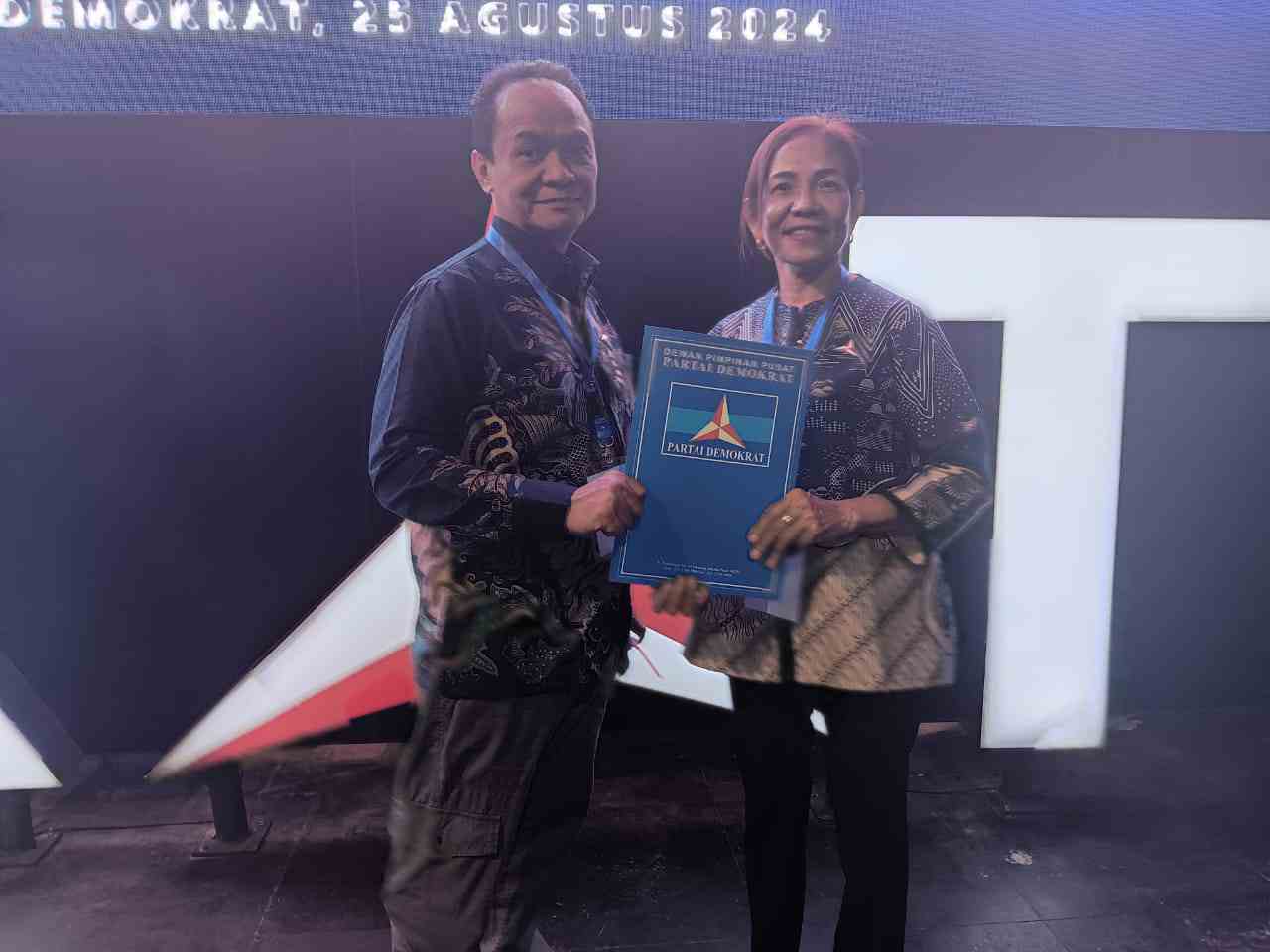 Partai Demokrat memberikan Rekomendasi Calon Bupati-Wakil Bupati Kabupaten Kupang 2024-2029 yaitu Dr. Messerasi Ataupah dan Maria Nuban Saku di Kantor DPP Demokrat Jakarta pada hari Selasa, 25 Agustus 2024.