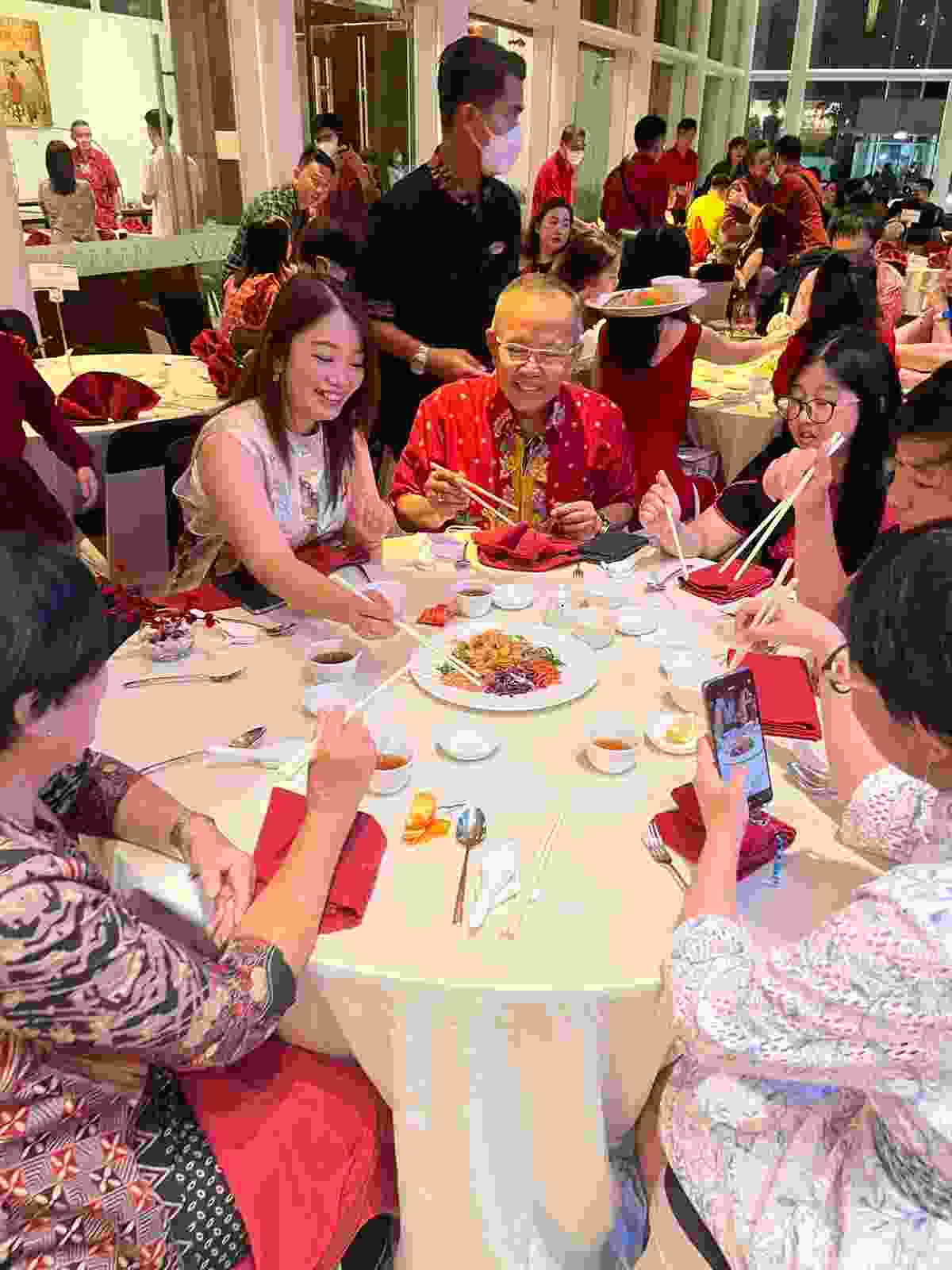 Tradisi makan bersama keluarga di hari raya imlek tentu saja akan lebih terasa hangat dan menyenangkan. Aneka makanan yang dihidangkan antara lain Steamed Rice, Fried Rice Yeung Chow, Hokkien Noodles, Broccoli Crab Meat, Ayam Goreng Mentega, Steamed Fish, Beef Black Pepper, Aneka Dessert, Live Stall Mie Ayam, Dimsum, Roasted Duck, dan tidak lupa makanan khas di Hari Raya Imlek yaitu Yu Sheng Salad.