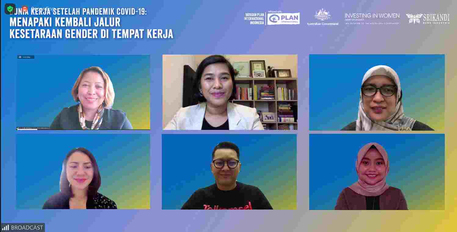 Berangkat dari situasi ini, Yayasan Plan International Indonesia (Plan Indonesia) mengadakan dialog intergenerasional bertajuk “Dunia Kerja di Masa Pandemik COVID-19: Menapaki Kembali Jalur Kesetaraan Gender di Tempat Kerja” pada Selasa (23/11). Dialog intergenerasional yang dilaksanakan secara daring dan dihadiri oleh lebih dari 680 audiens ini bertujuan untuk mempromosikan kesetaraan gender di dunia kerja melalui dialog antara berbagai pemangku kepentingan yang turut hadir dalam acara.
