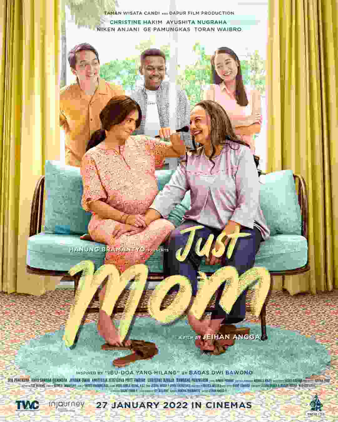 Film Just Mom diperankan oleh Christine Hakim, Ayushita, Niken Anjani, Ge Pamungkas, Dea Panendra dan Toran Waibro akan tayang di Bioskop Indonesia mulai tanggal 27 Januari 2022 .Film ini diharapkan mampu menyampaikan kehangatan dan mampu membawa penontonmerasakan kerinduan mendalam Ibu Siti untuk berkumpul dengan keluarga kecilnya.