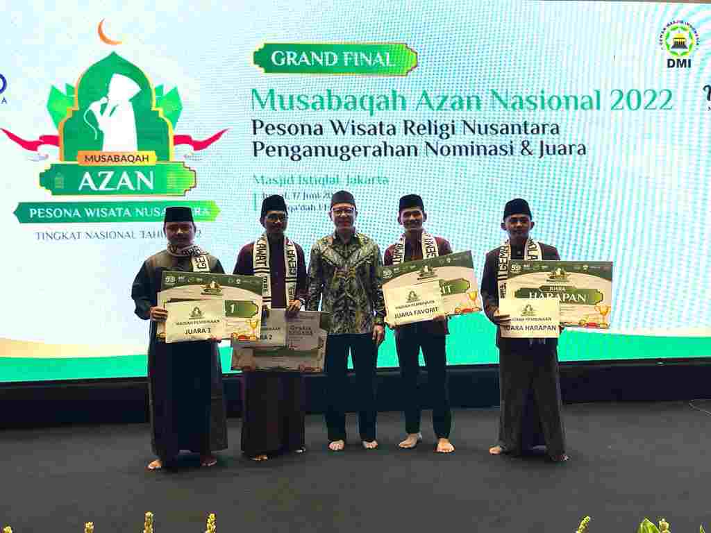 Puncak acara Gran Final dari Musabaqah Azan Nasional (MAN) I Tahun 2022 telah usai digelar di Masjid Istiqlal Jakarta dengan meriah tetap khidmah. Meskipun dengan tetap dalam protokol kesehatan, acara berlangsung dihadiri para tokoh nasional penting, termasuk tamu dari luar negeri. Wapres ke 10 dan 12, HM Jusuf Kalla yang juga Ketua Umum DMI didampingi Menteri Ekonomi Kreatif RI, Dr H Sandiaga Salahuddin Uno. Selain secara luring, panitia juga menyiapkan link secara virtual melalui Zoom diikuti oleh pengurus DMI provinsi dan kabupaten se Indonesia.