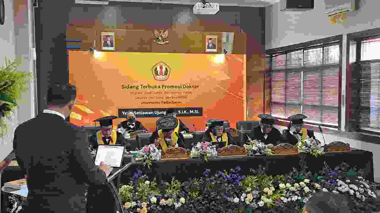 Promosi doktor Kombes Pol Yade Setiawan Ujung, dengan disertasi berjudul “Evaluasi Kebijakan Operasi Aman Nusa II dalam Penanganan Covid-19 Oleh Polrestabes Bandung” telah berlangsung diketuai oleh Prof. Dr. R. Widya Setiabudi Sumadinata, dengan sekretaris sidang Dr. Ramadhan Pancasilawan, M.Si., dan Prof. Muradi, S.S., M.Si., M.Sc., Ph.D., selaku ketua promotor dan berhasil dengan predikat nilai Cumlaude.