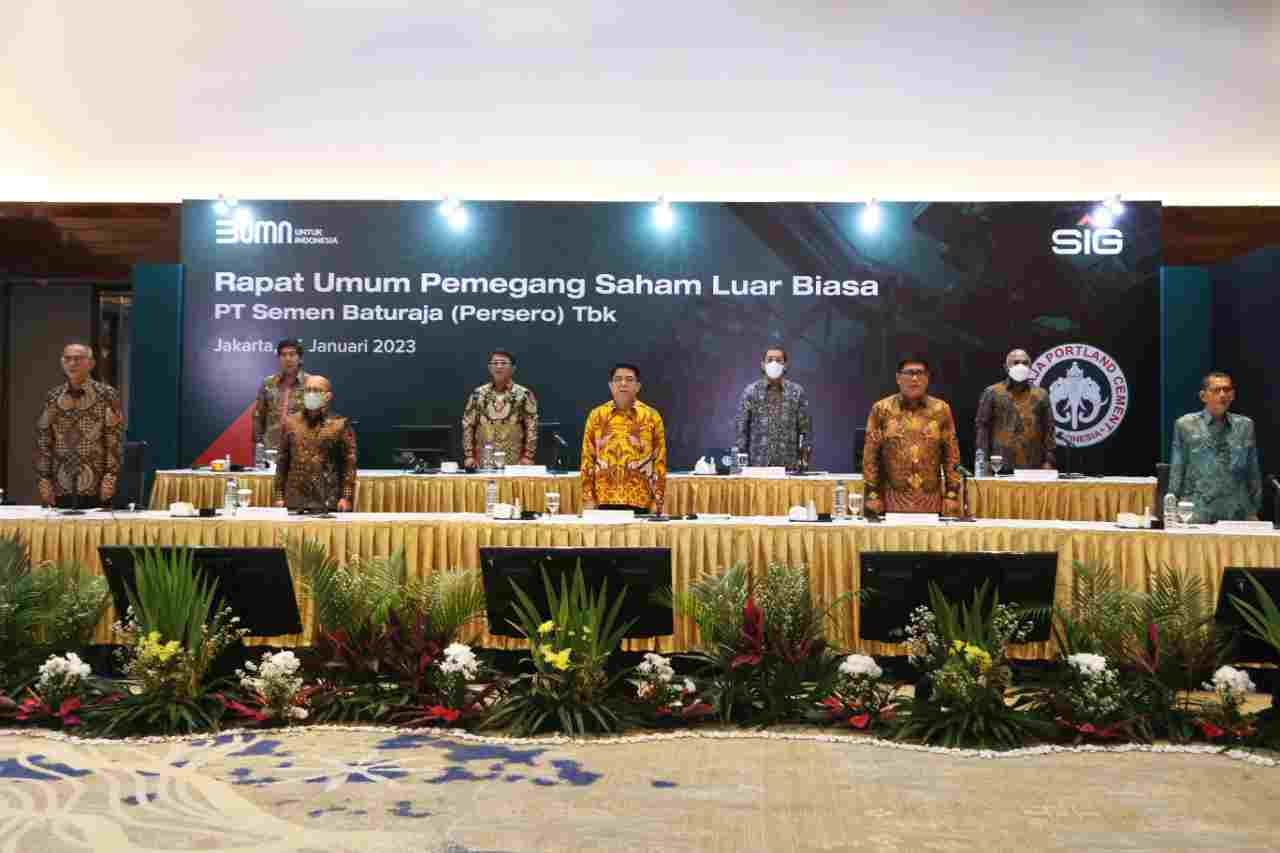 Pelaksanaan Rapat Umum Pemegang Saham Luar Biasa (RUPSLB) PT Semen Baturaja (Persero) Tbk (SMBR) yang dilaksanakan di Hotel Sari Pacific Jakarta (24/01). Rapat yang dilaksanakan ini berlangsung secara tatap muka di Istana Ballroom Hotel Sari Pacific dan secara elektronik menggunakan fasilitas Electronic General Meeting System KSEI (system @ASY KSEI). Pada RUPSLB ini mengagendakan 2 (dua) mata acara utama yaitu perubahan Anggaran Dasar Perseroan dan Perubahan Pengurus Perseroan.