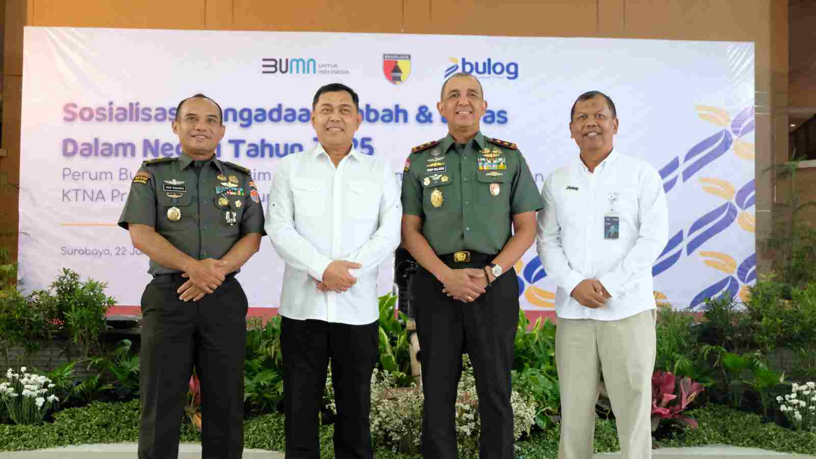 Perum BULOG bersama TNI menggelar sosialisasi tentang pengadaan gabah dan beras dalam negeri untuk Tahun 2025 di Gedung Graha Sativa Perum BULOG Kanwil Jatim, Surabaya. Kegiatan ini bertujuan untuk menyampaikan informasi penting terkait pembelian gabah kering panen (GKP) di tingkat petani yaitu sebesar Rp.6.500/kg dengan kadar air maksimal 25% dan kadar hampa maksimal 10% sebagaimana keputusan terbaru Kepala Badan Pangan Nasional.