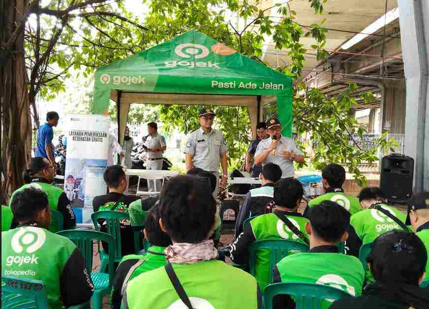 Selain pelatihan, PT Jasa Raharja juga menghadirkan layanan pemeriksaan kesehatan dan pengobatan gratis bagi sekitar 70 peserta yang terdiri dari pengemudi ojol serta warga sekitar. Layanan ini meliputi pemeriksaan tekanan darah, konsultasi medis, serta pemberian obat sesuai indikasi, sebagai bentuk kepedulian perusahaan terhadap kesehatan para mitra dan masyarakat.