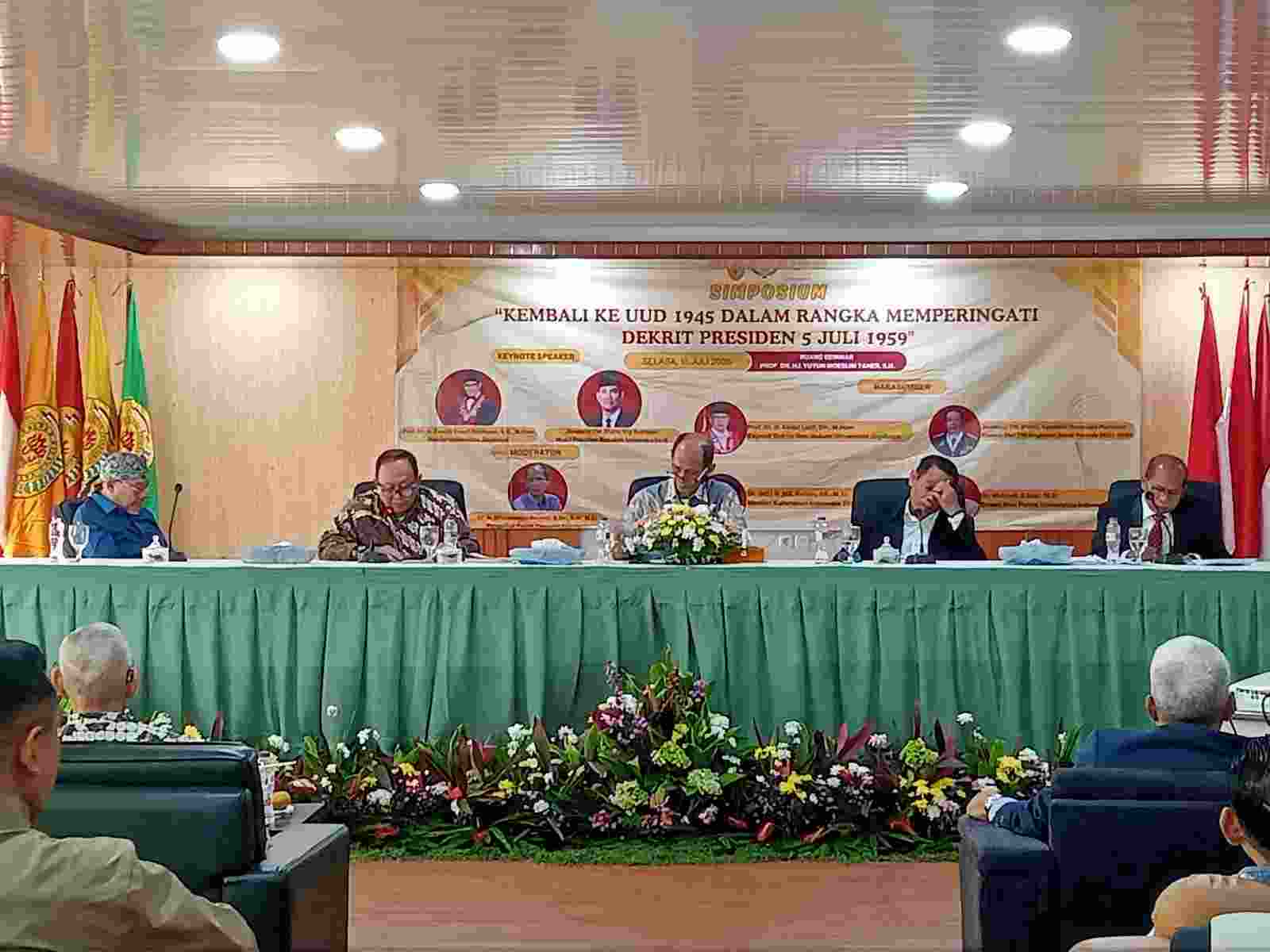 Dekrit 5 Juli 1959 ini adalah memberlakukan kembali ke UUD 1945, kemudian sejarah munculnya Dekrit Presiden 5 Juli 1959, hingga sampai saat ini masih berlaku, karena belum dicabut. Jenderal TNI (Purn). Agustadi Sasongko Purnomo juga menjelaskan kepada hadirin mengenai isi Dekrit Presiden 5 Juli 1959 sesuai dengan tema simposium. “Kita harus kembali ke UUD 1945,” tegasnya.